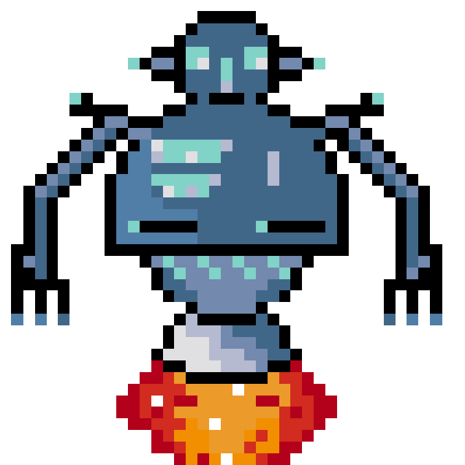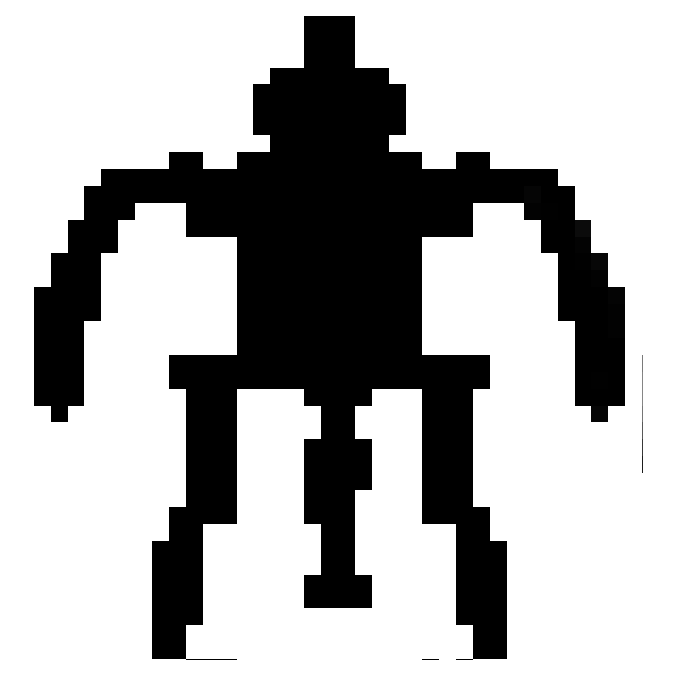To begin with I sketch several silhouettes of robots onto paper. I then decided which of the sketches I preferred and decided from looking at a variety of pixel art references decided to do a low detail 8bit concept.