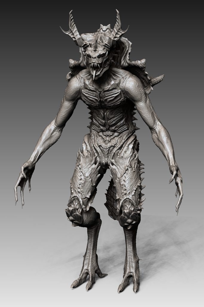 This was mainly the simplified process I took throughout the entirety of this model and the overall character changed alot as I worked. I was taught by my friend that the worst thing you can do is become too atached to a sculpt, to not be afraid to change the shape and form of the character, add or remove details. You can find by doing this you discover more interesting and better designs, becoming too fixated on certain details or becoming too attached to certain parts can infact have a negative impact on the sculpt. Another tip I was given, was to work within layers when making these changes. Layers in ZBrush work like layers in Photoshop, they are dynamic and not permanent, can be altered and removed. By working in a layer, the sculptor can see the difference between the original sculpt and the changes that have been made, via a slider on the layer. If happy with the changes, you simply bake the layer and it becomes semi-permanent (still undoable via CTRL+Z). If the sculptor is not happy with the changes, they can simply delete the layer, removing the changes.