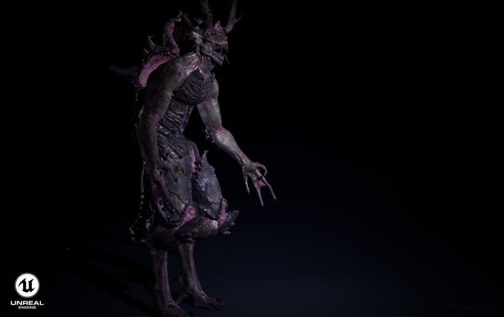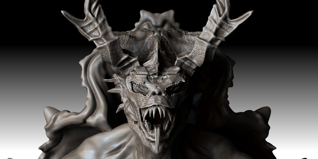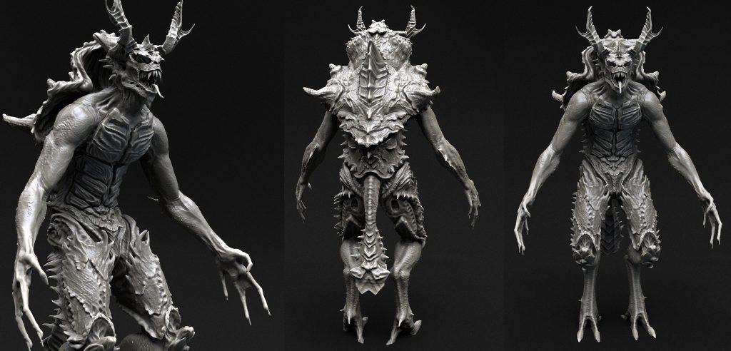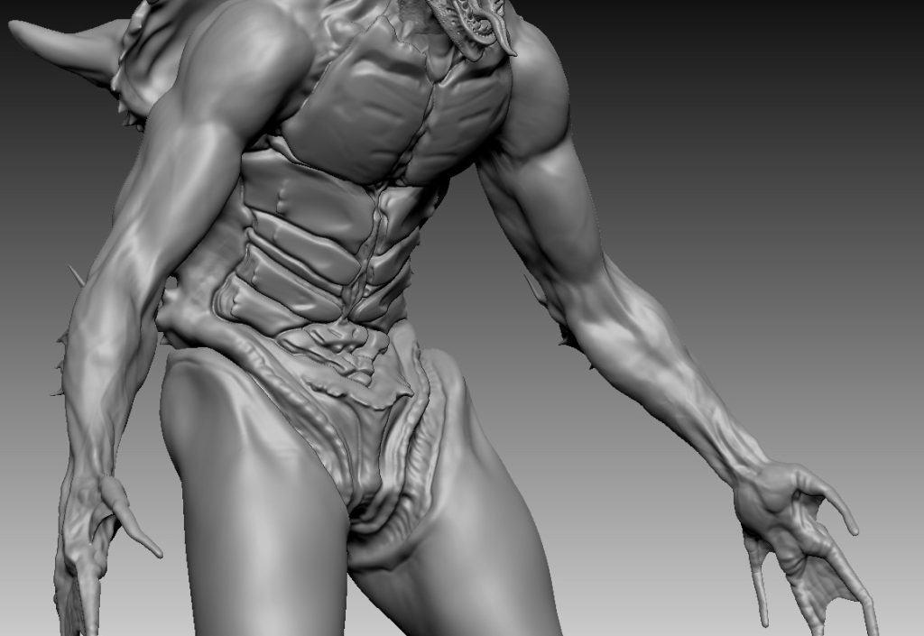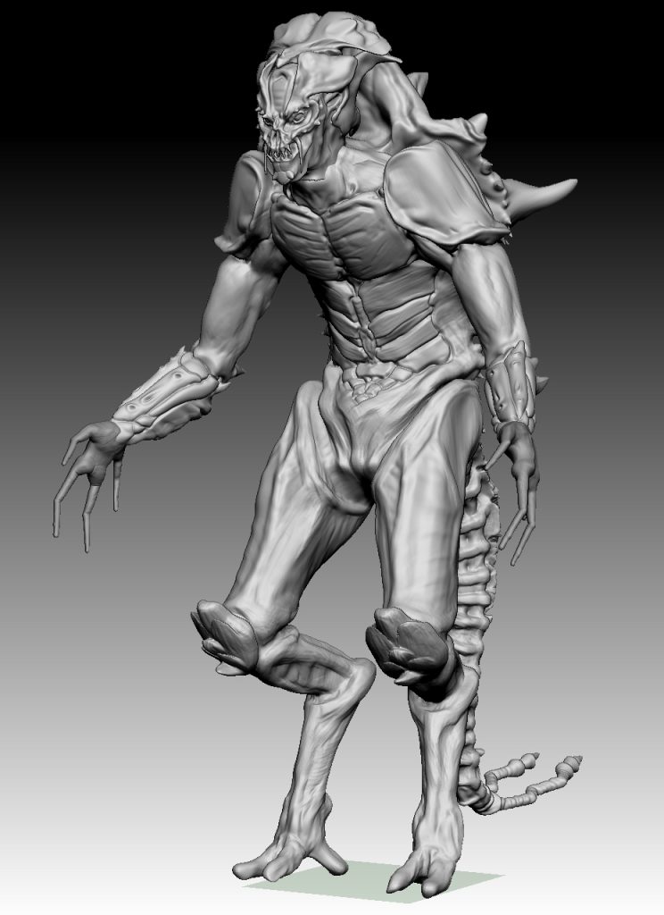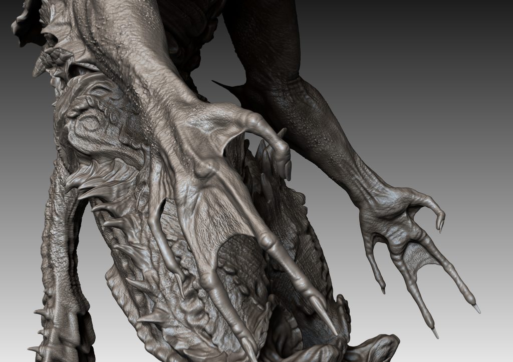 Working with Zbrush was incredibly fun and such an explorative journey. Previous to this sculpt, I only had minor knowledge with the program and hadn’t much experience sculpting something to this degree. My previous knowledge within Zbrush was limited to working with small details, such as adding engraving to hard surface models like weapons, sculpting an organic creature, that had to be anatomically correct was a whole new challenge. However, I had some help and a lot of guidance from a friend, who has sculpted for over eight years, and is a professional within the industry already. From his knowledge and guidance I quickly grew, learning the basics of anatomy and the principles of designing creatures. Most of all, Luke (professional) demonstrated how fancy brushes and exspensive IMM brushes are not necessary in the creation of a high qaulity creature, that most of any detail and shape can be achieved with the standard brushes ZBrush has to offer.