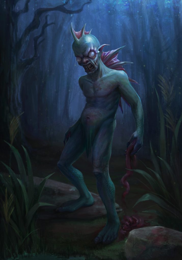 To begin with, I created a type of story for my design, a background of its made-up traits and biology. Since the freedom for design was high, it was difficult to narrow down a creature. To start generating ideas, created a Pinterest board and browsed many designs. After reviewing some designs, I then decided on a fantasy creature, likening something that you would find in a Witcher novel. The Drowner – from the witcher games – had caught my attention, and I decided from here to create a Drowner inspired creature. A drowner is humanoid, and its main biome is the swamps and marshes of the world within the game.