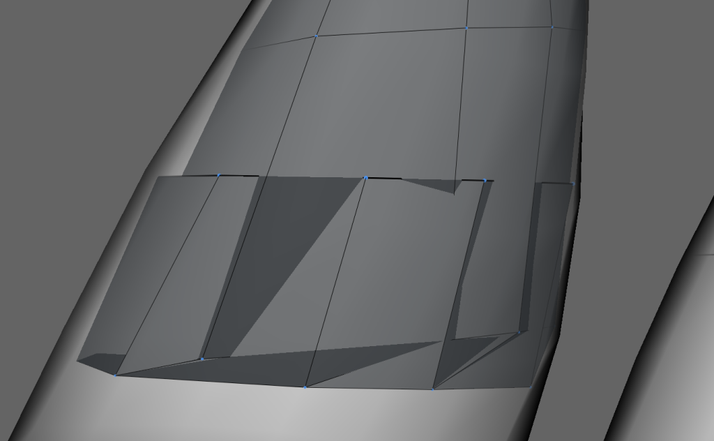 Once the arm was done, I moved onto the hand and rear of the shell. The shell was an enormous task, I broke this into 3 sections: the upper shell, the lower shell and the gap in between them, doing them seperately then joining them together later. The first thing I always completed when starting a new area was ring and loop any spikes, as this just makes joining them up to the flat transitions easier.