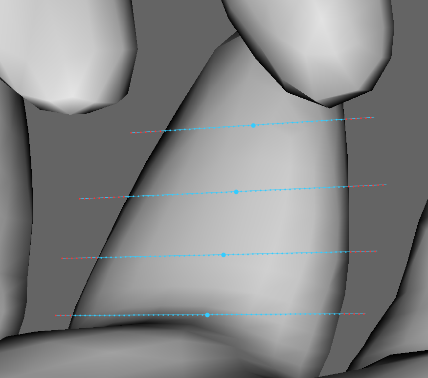 Simple edit allows the selection of individual vertices, also allows the user to move them about. This can be used with backface selection to select verts that are behind the reference mesh. Simple create allows the individual placement of vertices on the reference mesh, this is the most normal way to work but takes time placing them all. The placed verts can the be bridged using the bridge tool to create lines between the verts, creating polygons or triangles. The tube tool is a great tool which allow the user to draw divisions at an angle on tubular style parts, you select the number of divisions you want, then right click to create a tube. The tool can be tricky, sometimes not placing the loops correctly or incorrectly joining them.