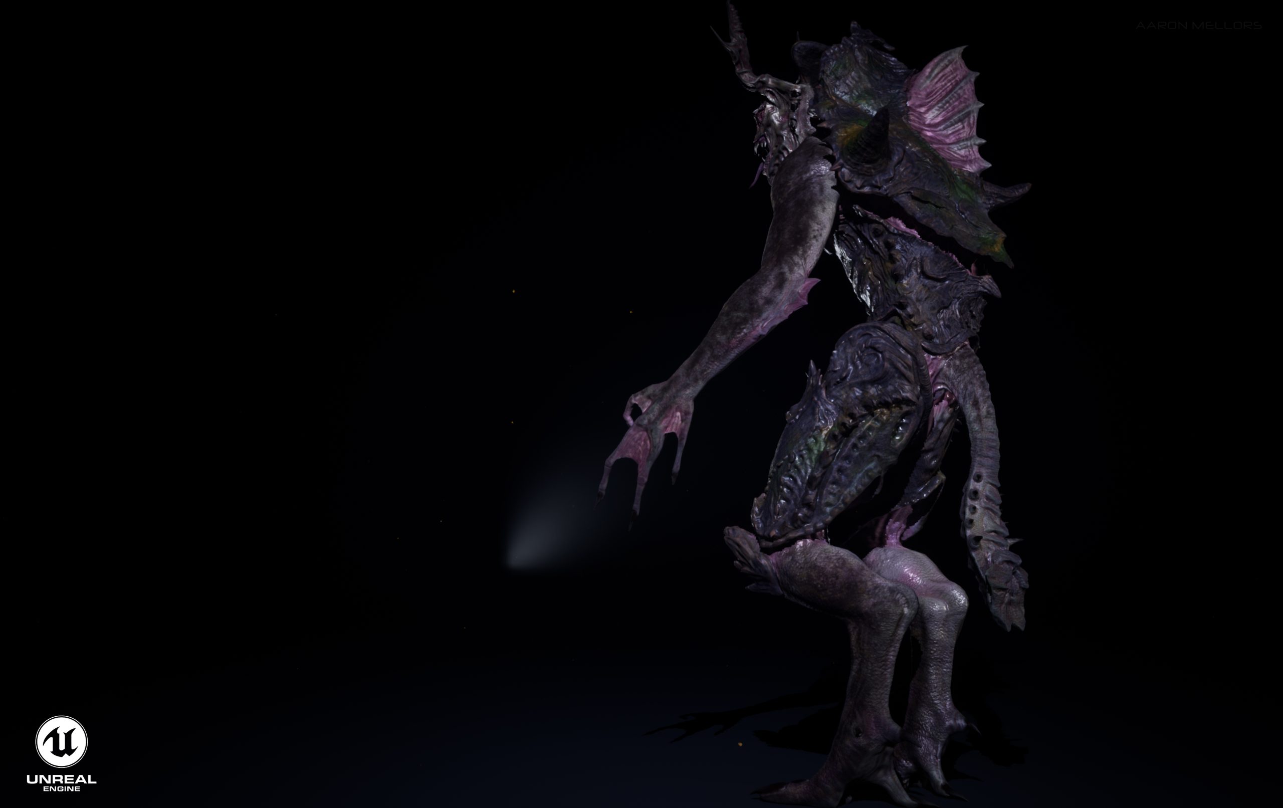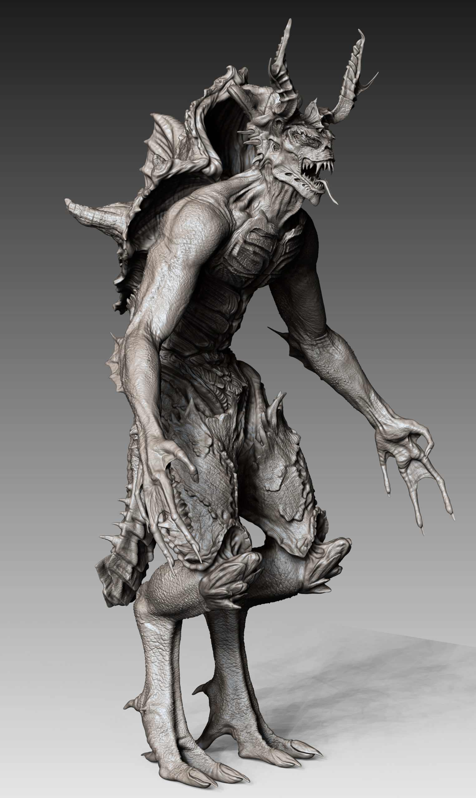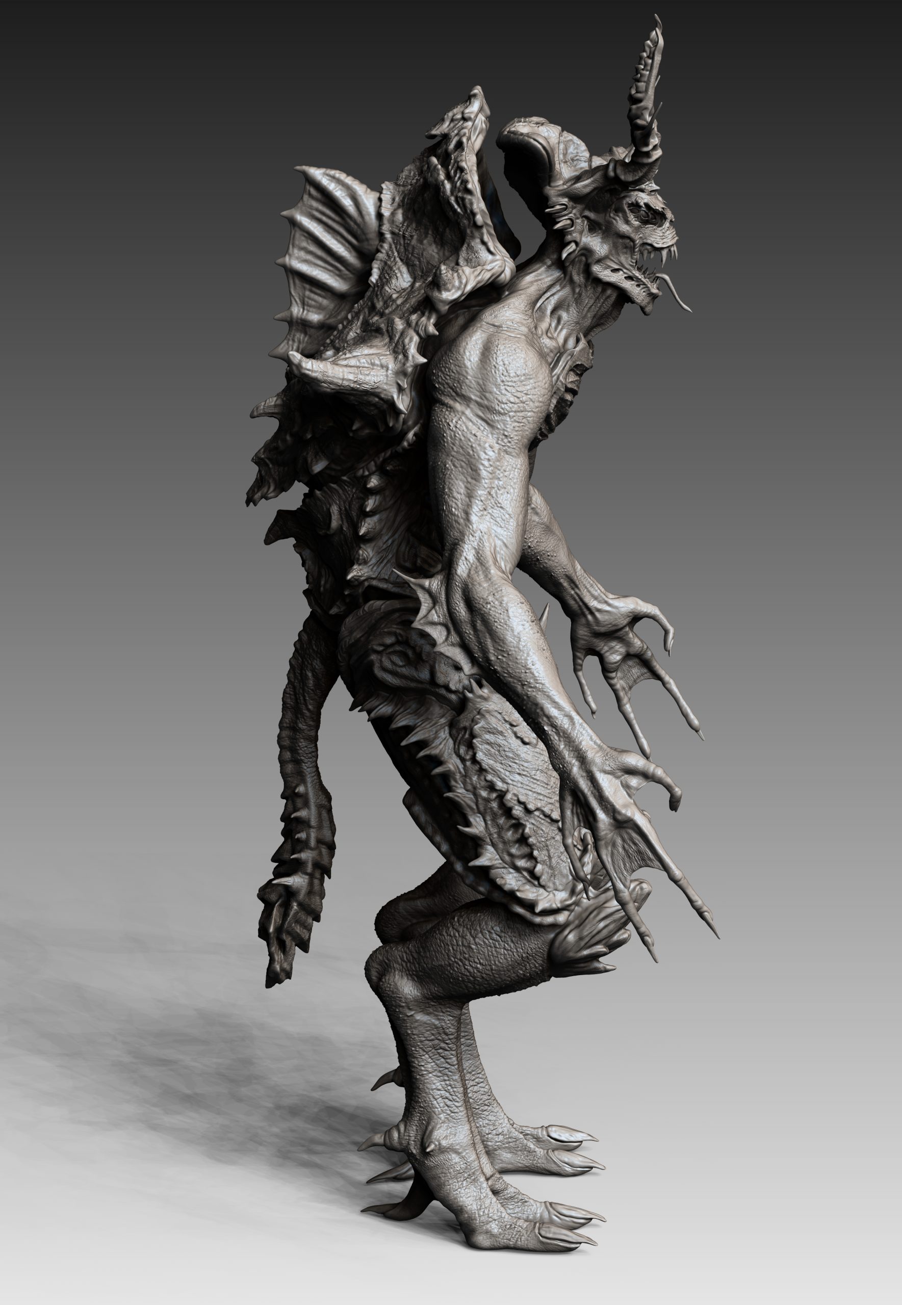 Working with Zbrush was incredibly fun and such an explorative journey. Previous to this sculpt, I only had minor knowledge with the program and hadn’t much experience sculpting something to this degree. My previous knowledge within Zbrush was limited to working with small details, such as adding engraving to hard surface models like weapons, sculpting an organic creature, that had to be anatomically correct was a whole new challenge. However, I had some help and a lot of guidance from a friend, who has sculpted for over eight years, and is a professional within the industry already. From his knowledge and guidance I quickly grew, learning the basics of anatomy and the principles of designing creatures. Most of all, Luke (professional) demonstrated how fancy brushes and exspensive IMM brushes are not necessary in the creation of a high qaulity creature, that most of any detail and shape can be achieved with the standard brushes ZBrush has to offer.