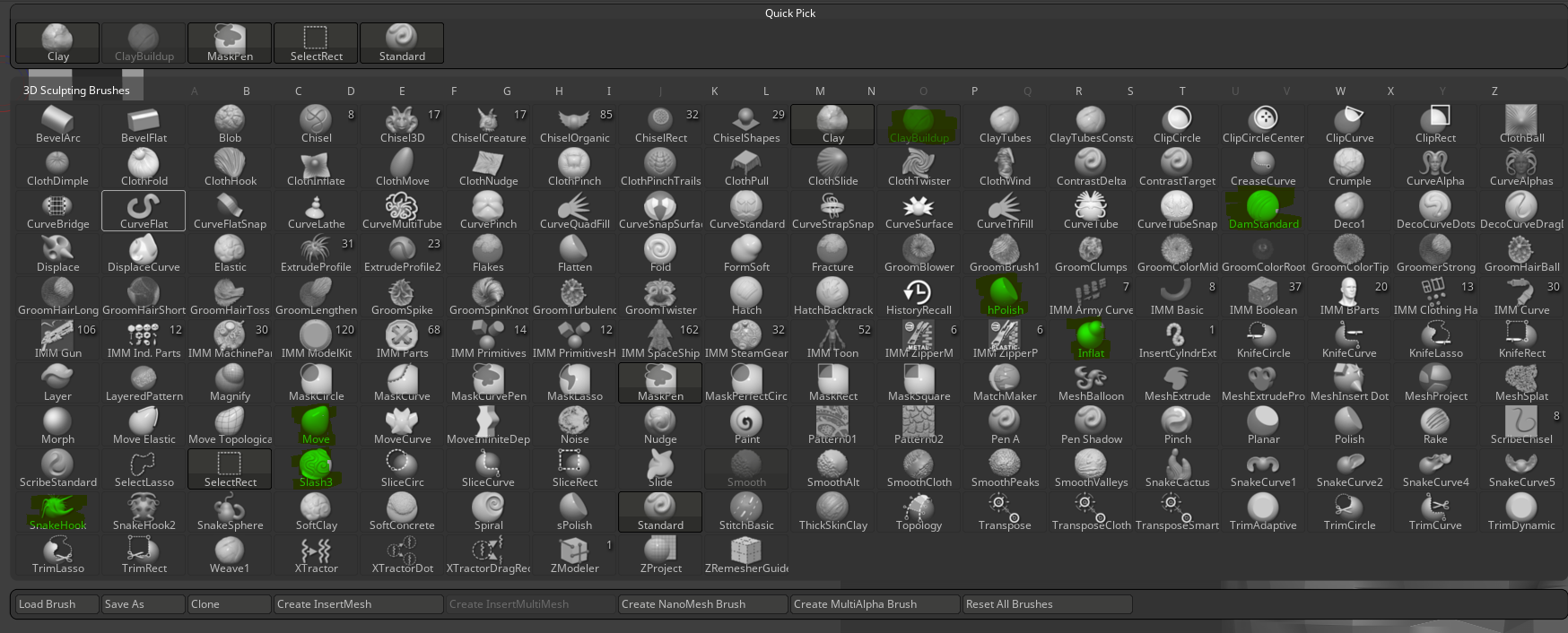 Ths most common brushes which I ended up using from his suggestions where the standard brush; excellent at adding quick shape and build-up of the material. The Clay Buildup tool is one of the best tools for building up additional shape but best of all, when used lightly and consistently in the same driection, can even give you ‘free detail’ from the strokes and stryations it tends to make in the clay. The Dam standard tool is excellent at cutting into the clay to create trenches and harsh creases. When used lightly (by dropping the intensity) it can also be used to define detail in areas, such as mapping out muscles and tendons. The inflate brush was mainly used for areas such as fingers, where the mesh can become a little thin and require a little thicknening out. Mainly however, I used it mostly to repair glitches/holes in the mesh, by inflating the holes first then dyna-meshing the model, it helps close these awkward holes. The move tool is extremely important and once again, should really be used with the inetnstiy turned down, this way the tool can be used to nudge and ease certain areas of the model around, allowing quick editing and anatomy tweaking, I used this brush frequently, mainly for positioning certain things such as spikes and fingers, arms, jaw placement, eye placement, the tool is dynamic and very useful overall. Hpolish is a tool which requires a little bit of experimentation and practice since using it can be quite tricky to achieve the sort of polished edge you require. The user must make sure the orientation of the brush matches the direction you would like the brush to flatten/polish off. I used this later after much practice and I mainly used it to polish off the shell areas of the creature to add a nice solid carapace look, like that of a turtle. Slash3 is very similar to dam standard, however, it is very aggressive and carves right into the model, its good for quick/deep trenches and holes. The snake hook is basically a free spike tool. The user grabs the area they want to stretch and pull in the direction they would like it to go. This, like the Hpolish brush can be tricky to use and requires a bit of practice. I used this brush for pulling out the inital base of the teeth, the horns, spikes, tongue, anything that protruded.
