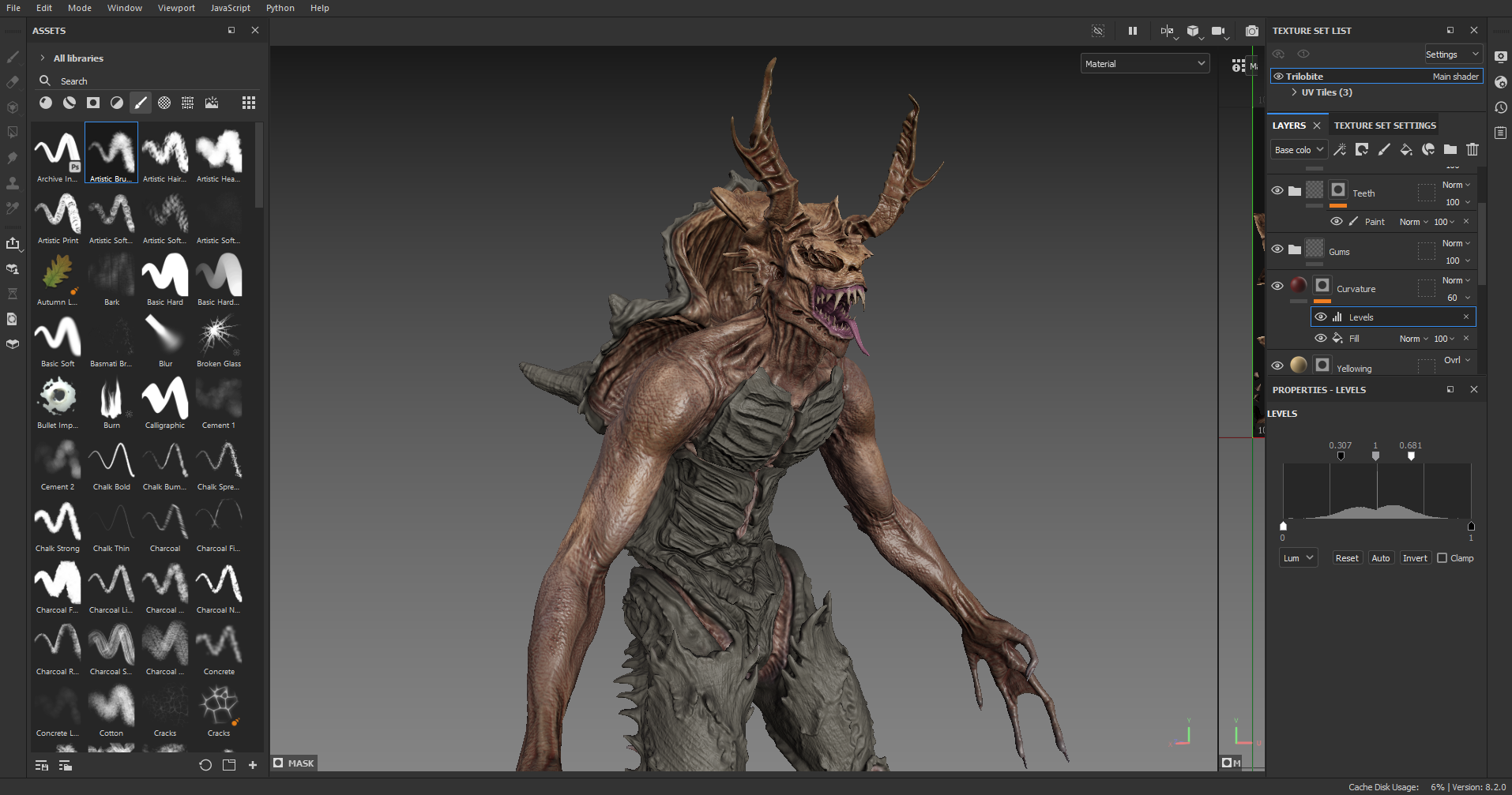 This was mainly the simplified process I took throughout the entirety of this model and the overall character changed alot as I worked. I was taught by my friend that the worst thing you can do is become too atached to a sculpt, to not be afraid to change the shape and form of the character, add or remove details. You can find by doing this you discover more interesting and better designs, becoming too fixated on certain details or becoming too attached to certain parts can infact have a negative impact on the sculpt. Another tip I was given, was to work within layers when making these changes. Layers in ZBrush work like layers in Photoshop, they are dynamic and not permanent, can be altered and removed. By working in a layer, the sculptor can see the difference between the original sculpt and the changes that have been made, via a slider on the layer. If happy with the changes, you simply bake the layer and it becomes semi-permanent (still undoable via CTRL+Z). If the sculptor is not happy with the changes, they can simply delete the layer, removing the changes.